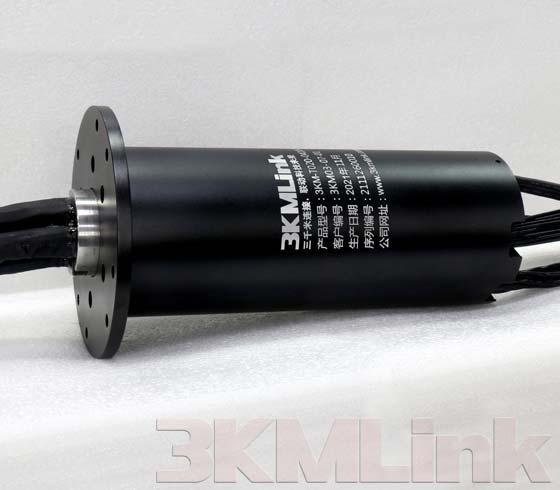 3KM T-series slip ring is designed with a through hole for shaft mounting, the through hole sizes are from 12.7mm to 124.6mm. it could be applied to transmit power, signals, RF, gas and fluid when the devices require 360° rotating.